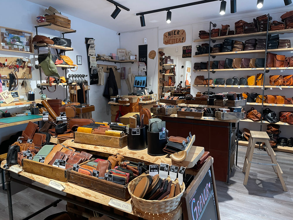In onze gezellige winkel in de Rotestraße wacht je een grote selectie aan unieke lederproducten. Van portemonnees tot heuptassen en stadsrugzakken, we hebben alles wat je hart begeert. Kom langs, ruik de geur van de lederwaren en overtuig jezelf van onze producten. We kijken uit naar je bezoek! Jouw Gusti Team Göttingen