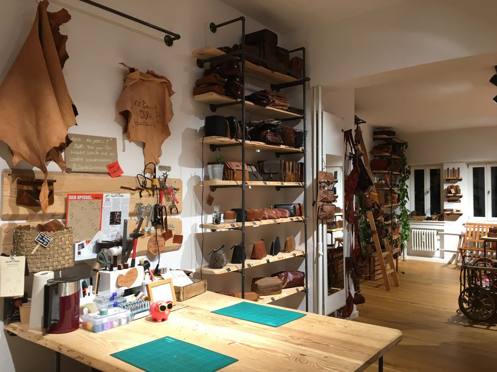 In onze Gusti-Leder-Store kan gegraveerd, creatief geknutseld of gewoon gesnuffeld worden. Van fietsequipment tot koopjeskoffer hebben we alles wat lederliefhebbers blij maakt. Bezoek ons team, ruik de geur van lederwaren en neem onze producten in de hand. We adviseren je graag! Jullie Team Marburg!
