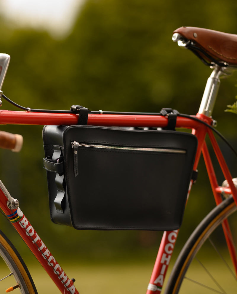 Frametassen bieden een slanke en praktische opbergoplossing zonder ruimte op de bagagedrager in te nemen. Eenvoudig te bevestigen met de stevige leren riemen aan de framebuis. Licht en compact beschermen ze je essentiële spullen zonder je tijdens het fietsen te hinderen.
