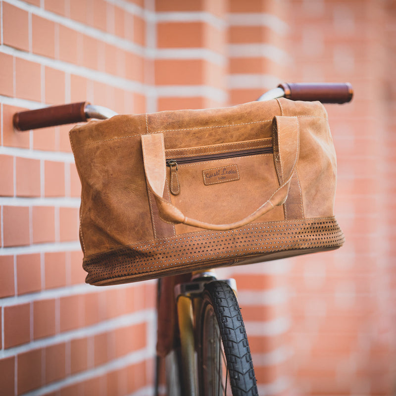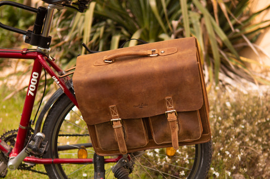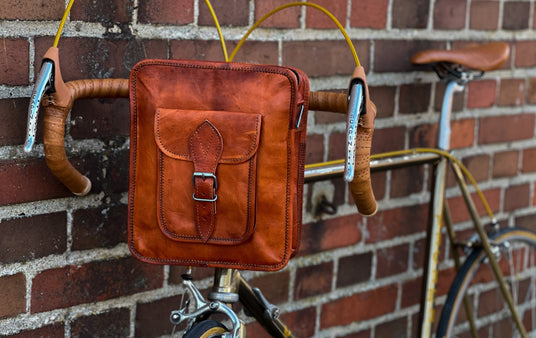Zeg vaarwel tegen zware rugzakken! Laat je fiets het werk doen en gebruik onze leren tassen, boodschappentassen en aktetassen. Robuuste en weerbestendige ontwerpen beschermen je essentiële spullen tegen stof, wind en zon – en voegen tegelijkertijd een vleugje elegantie toe aan je rit.