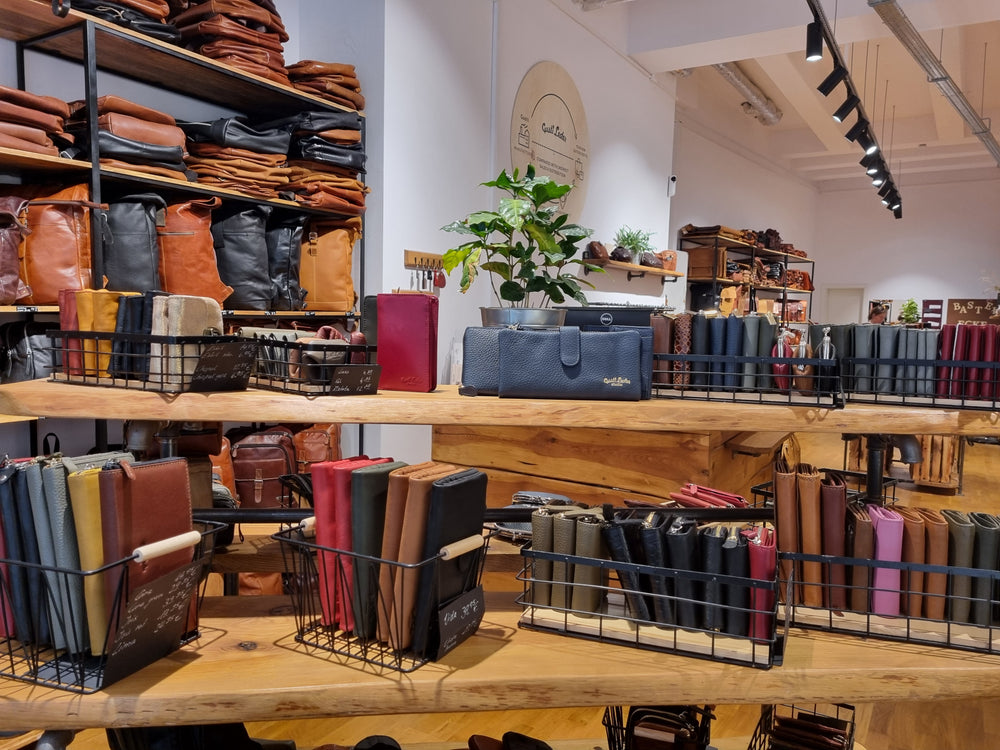 In onze gezellige winkel in de Wielandstraße wacht een grote selectie van unieke lederproducten op je. Van portemonnees tot heuptassen en stadsrugzakken, we hebben alles wat je hart begeert. Kom langs, ruik de geur van lederwaren en overtuig jezelf van onze producten. We kijken uit naar je bezoek!