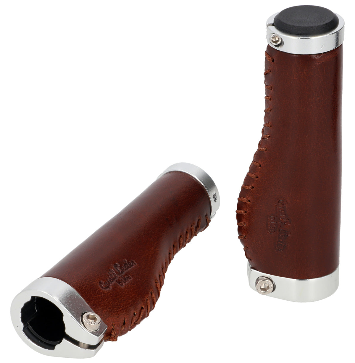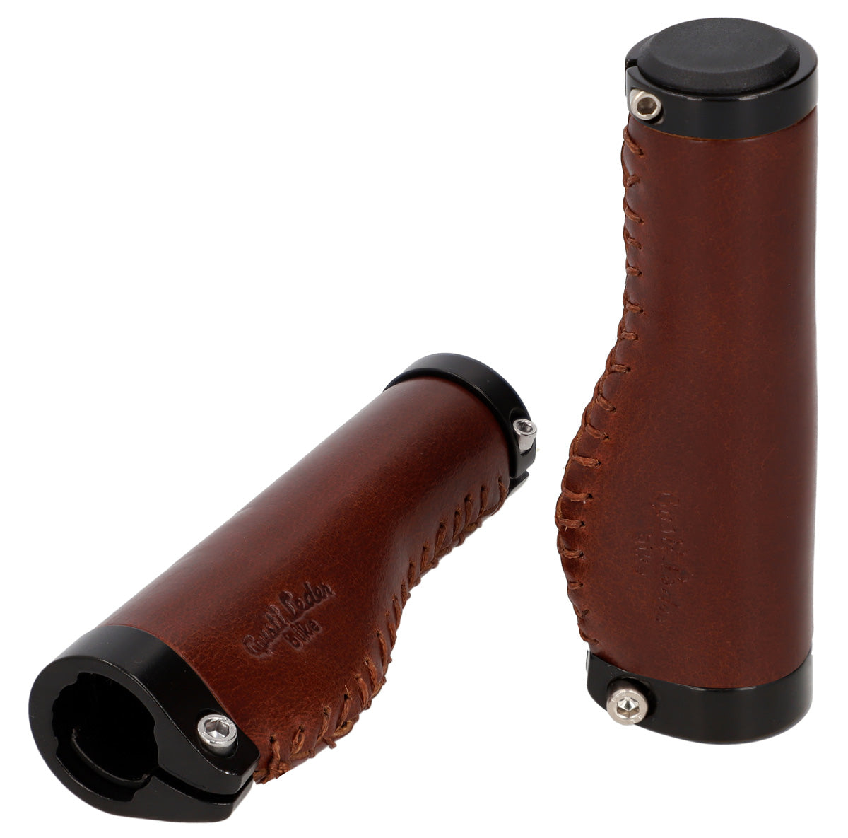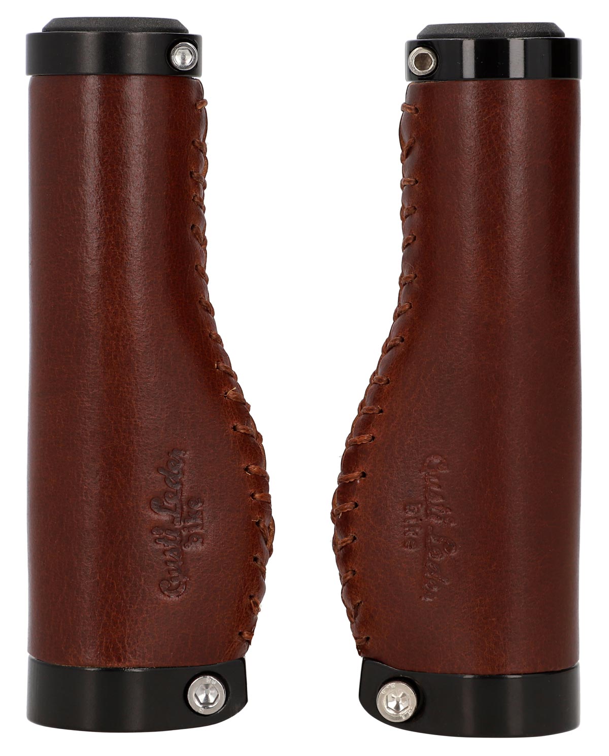 De leren handvatten "Phil A." passen optisch net zo goed bij een trendy single-speed fiets als bij een klassieke Hollandse fiets en zijn eenvoudig te monteren. Hun hoogwaardige materiaalcombinatie van gekleurd aluminium en 100% echt leer zorgt voor uitstekende grip en een constant goede stuurgedrag. Tegelijkertijd passen ze zich ideaal aan de anatomie van je handen aan, dempen schokken en trillingen en verhogen zo de gripveiligheid. Na een korte inrijperiode wil je het voelbare comfort en de aangename aanraking van deze handvatten niet meer missen.
