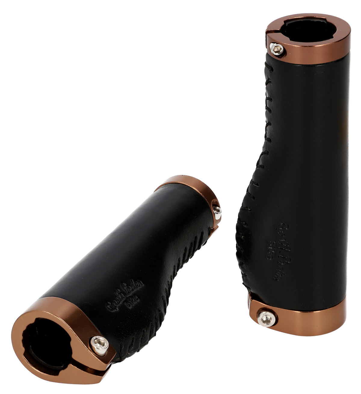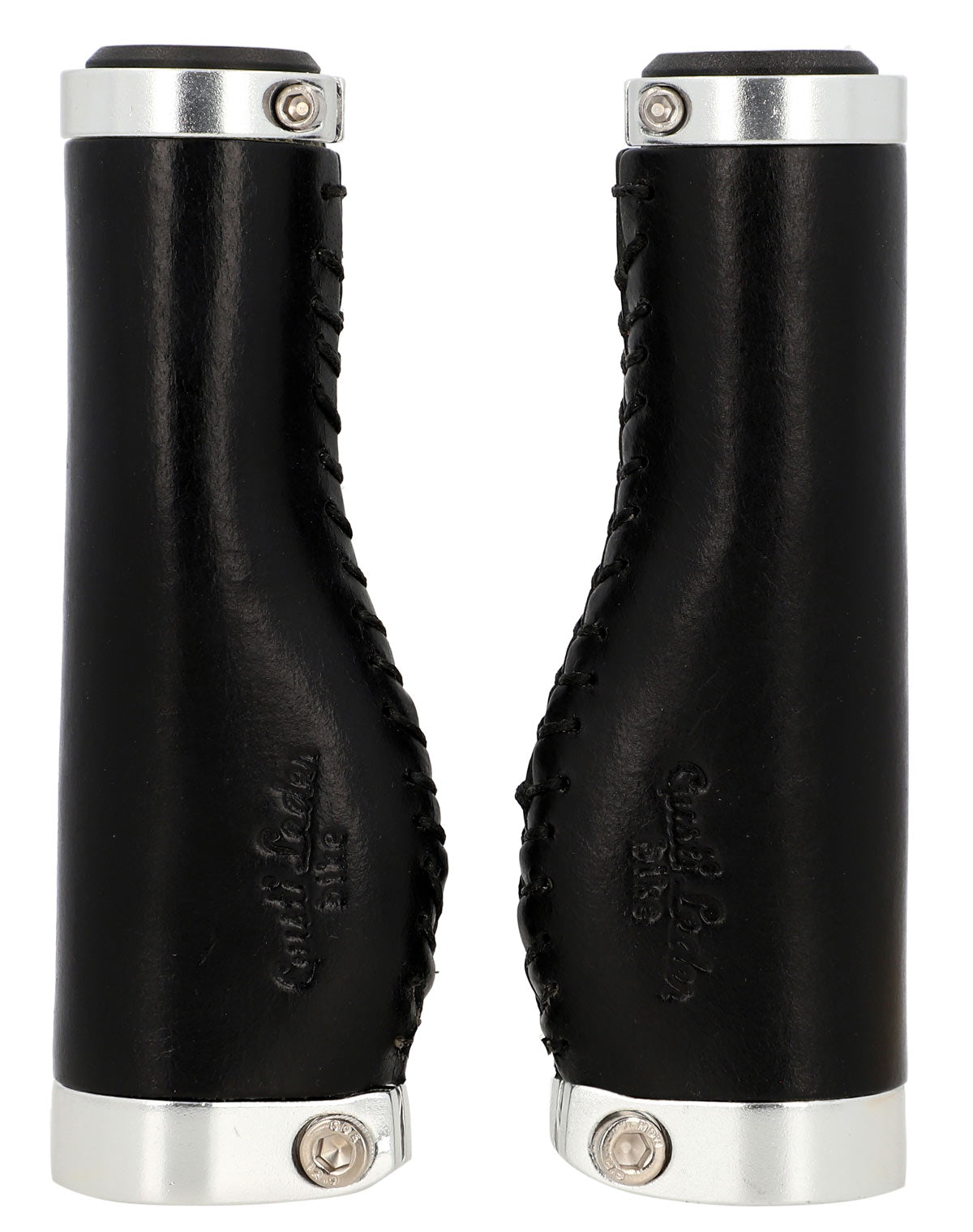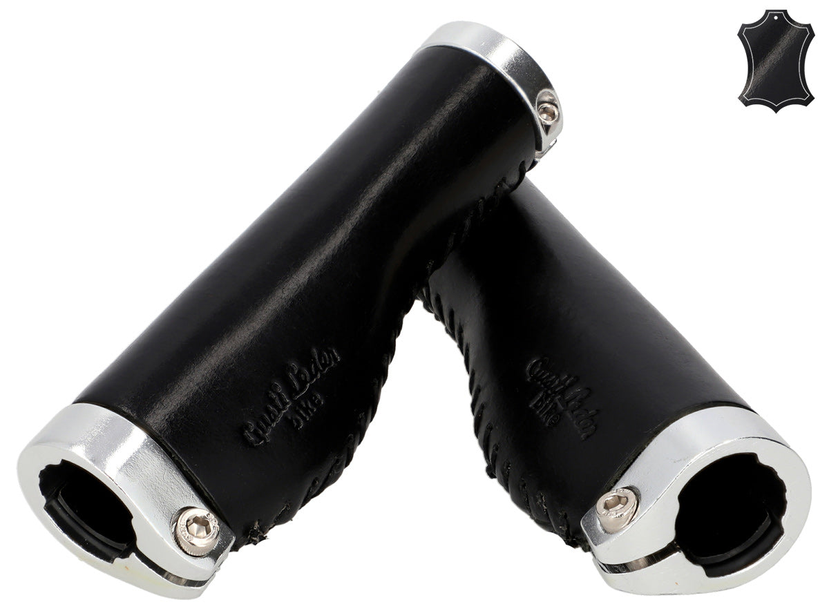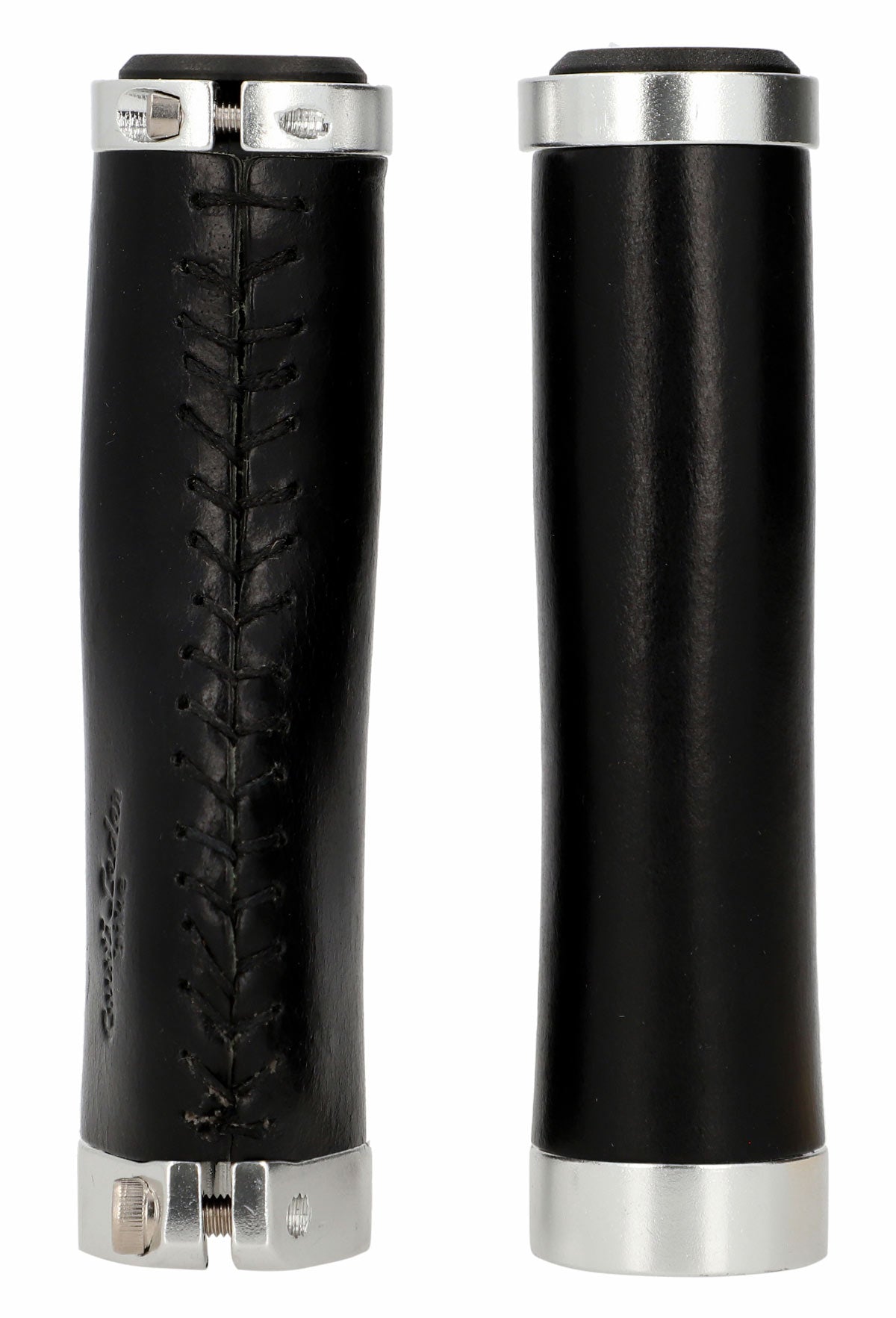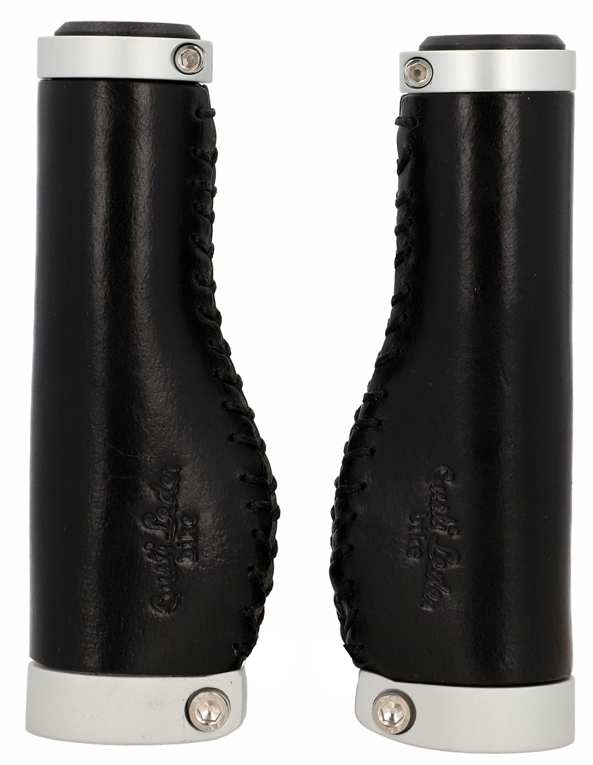 De leren handvatten "Phil A." passen optisch net zo goed bij een trendy single-speed fiets als bij een klassieke Hollandse fiets en zijn kinderlijk eenvoudig te monteren. Hun hoogwaardige materiaalcombinatie van gekleurd aluminium en 100% echt leer zorgt voor uitstekende grip en een constant goed stuurgedrag. Tegelijkertijd passen ze zich ideaal aan de anatomie van je handen aan, dempen schokken en trillingen en verhogen zo de gripveiligheid. Na een korte inrijperiode wil je het voelbare comfort en de aangename haptiek van deze handvatten niet meer missen.