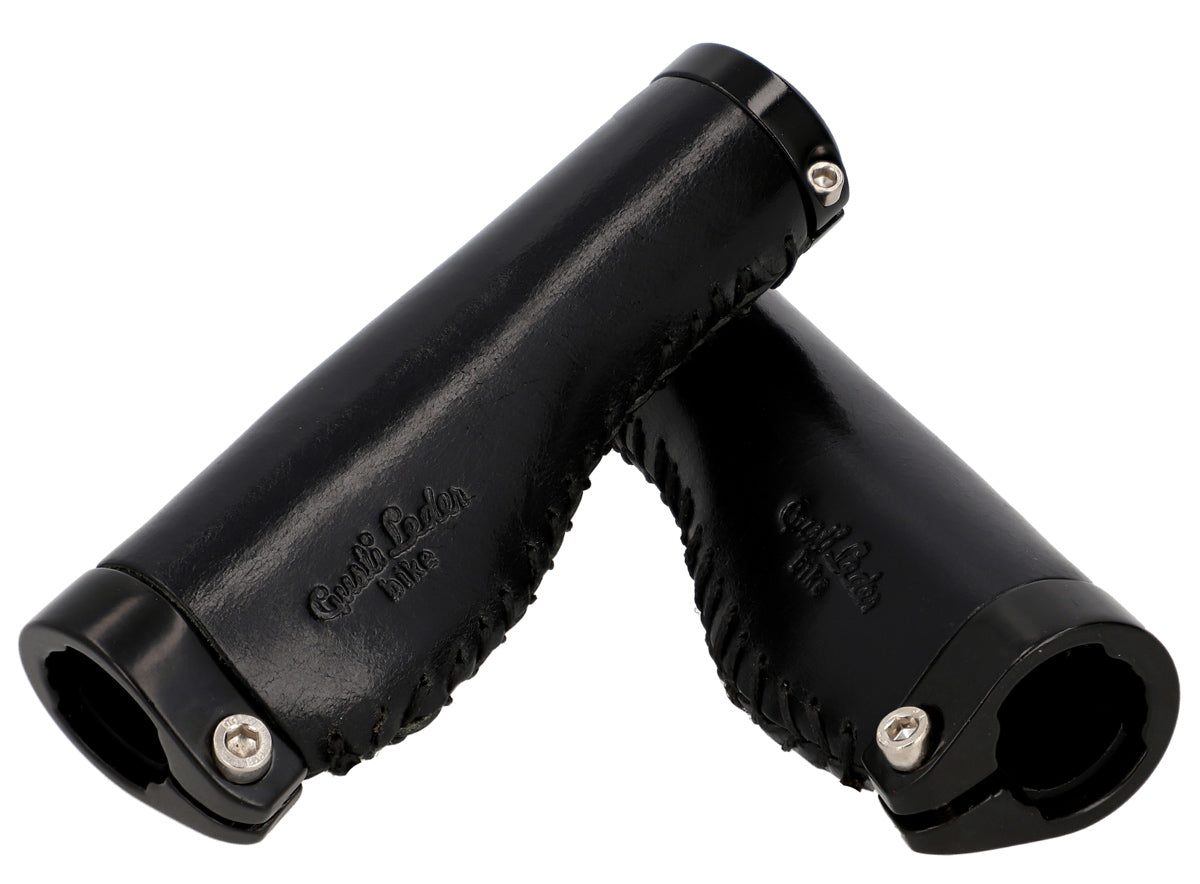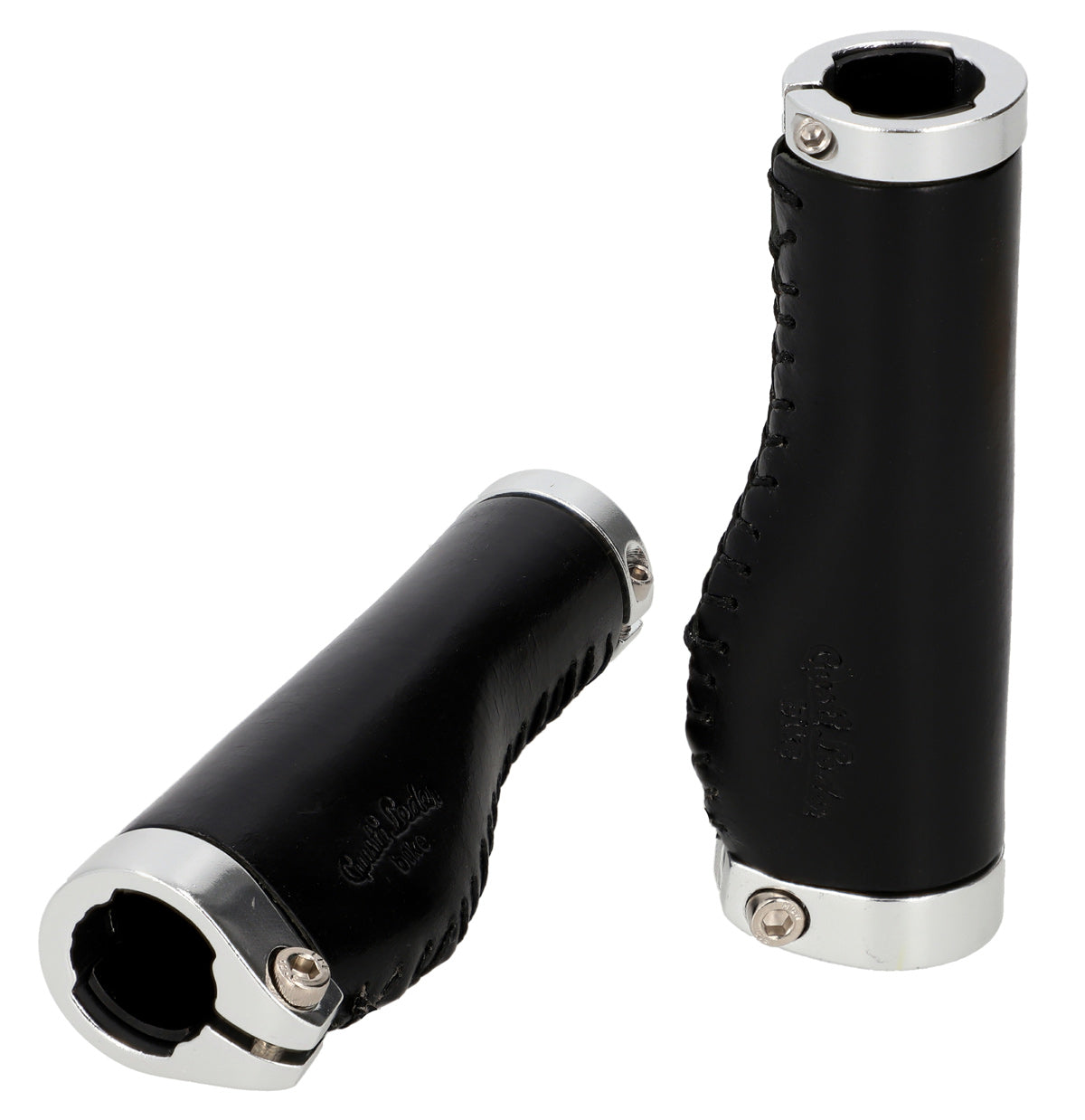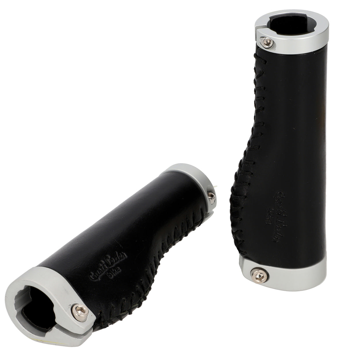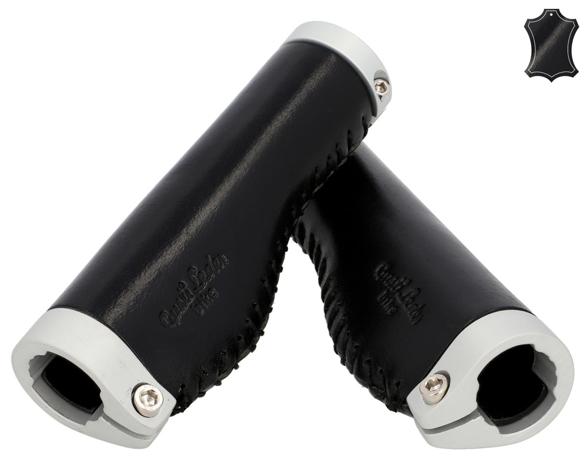 De leren handvatten "Phil A." passen optisch net zo goed bij een trendy single-speed fiets als bij een klassieke Hollandse fiets en zijn kinderlijk eenvoudig te monteren. Hun hoogwaardige materiaalcombinatie van gekleurd aluminium en 100% echt leer zorgt voor uitstekende grip en een constant goed stuurgedrag. Tegelijkertijd passen ze zich ideaal aan de anatomie van je handen aan, dempen schokken en trillingen en verhogen zo de gripveiligheid. Na een korte inrijperiode wil je het voelbare comfort en de aangename haptiek van deze handvatten niet meer missen.