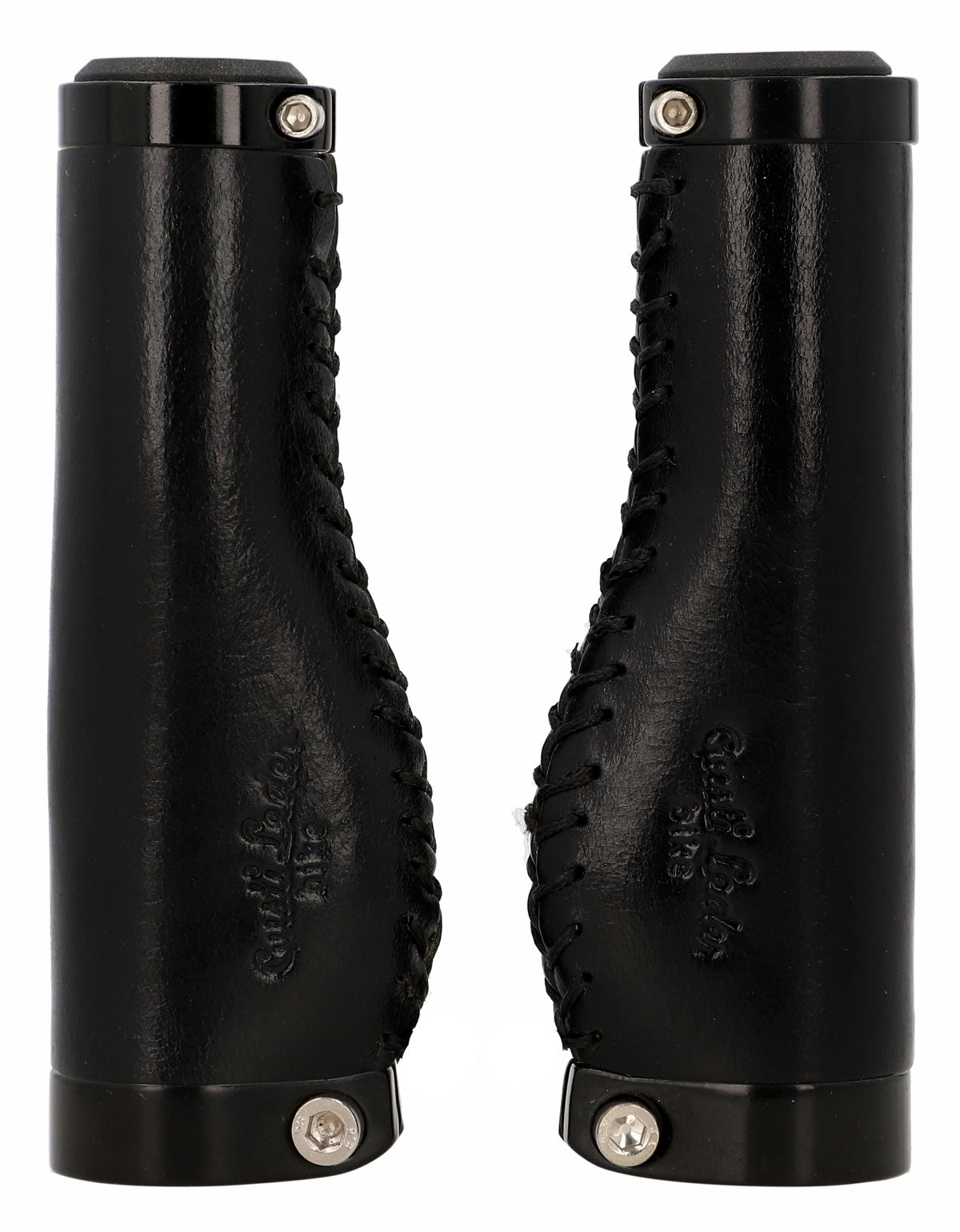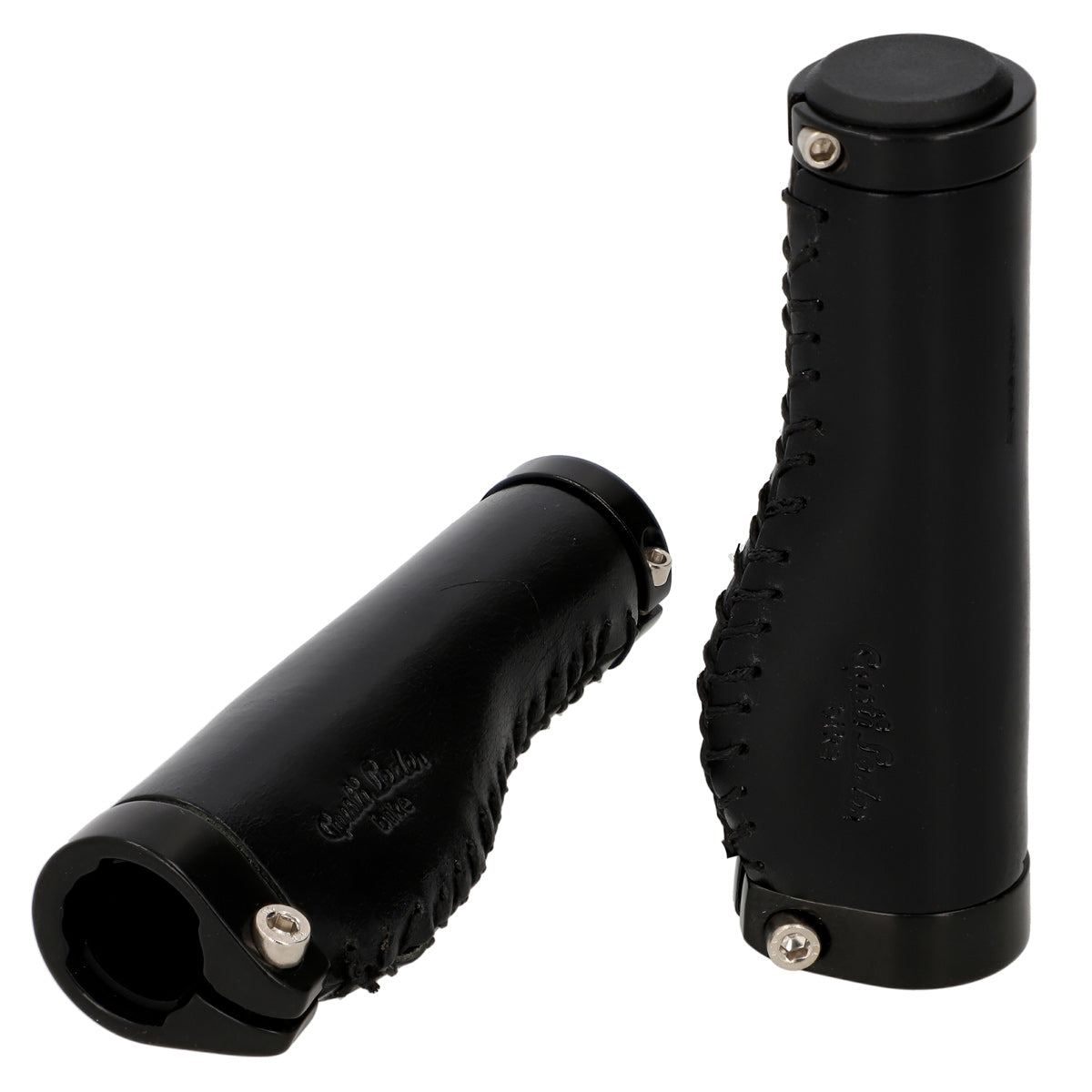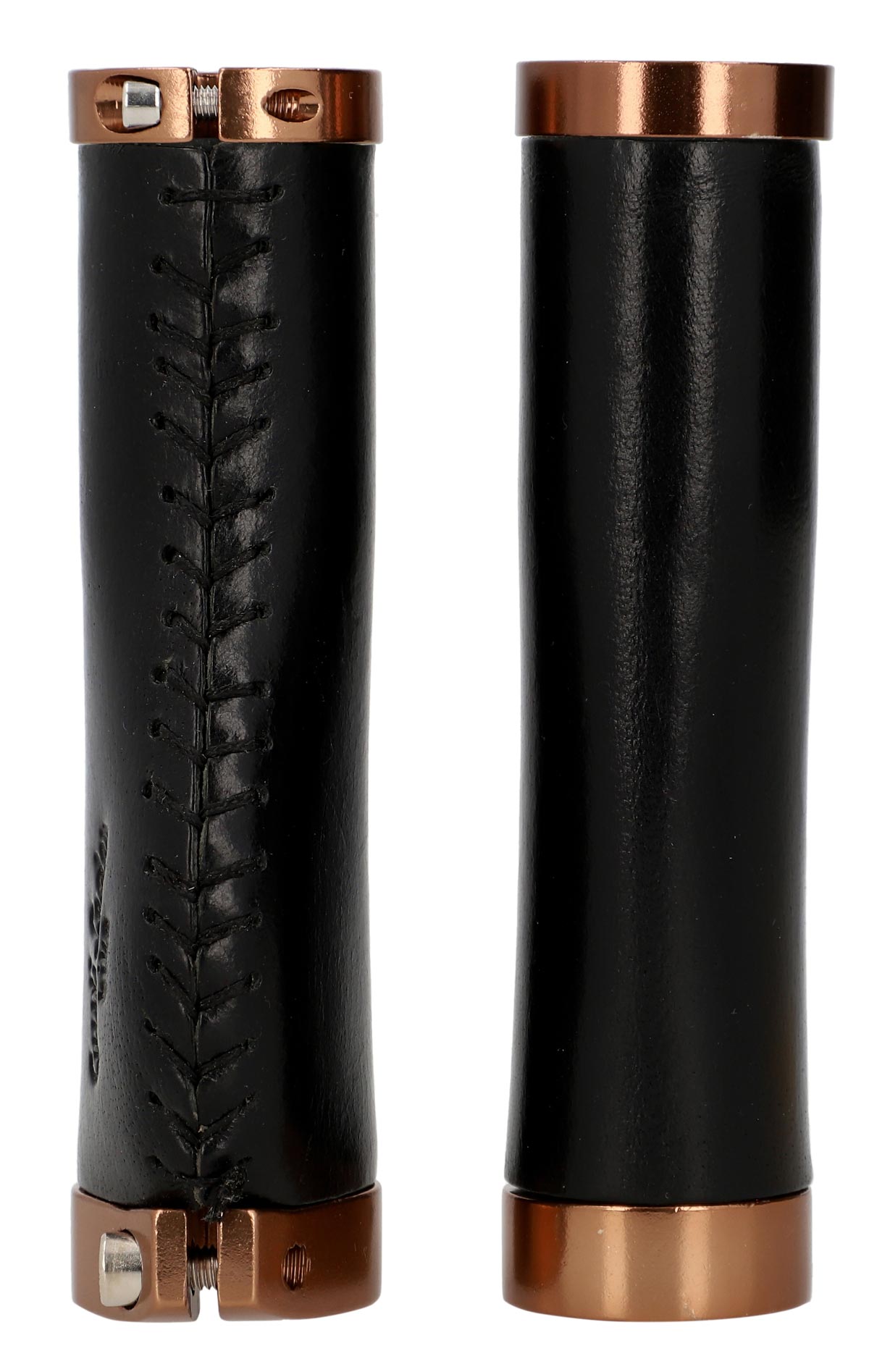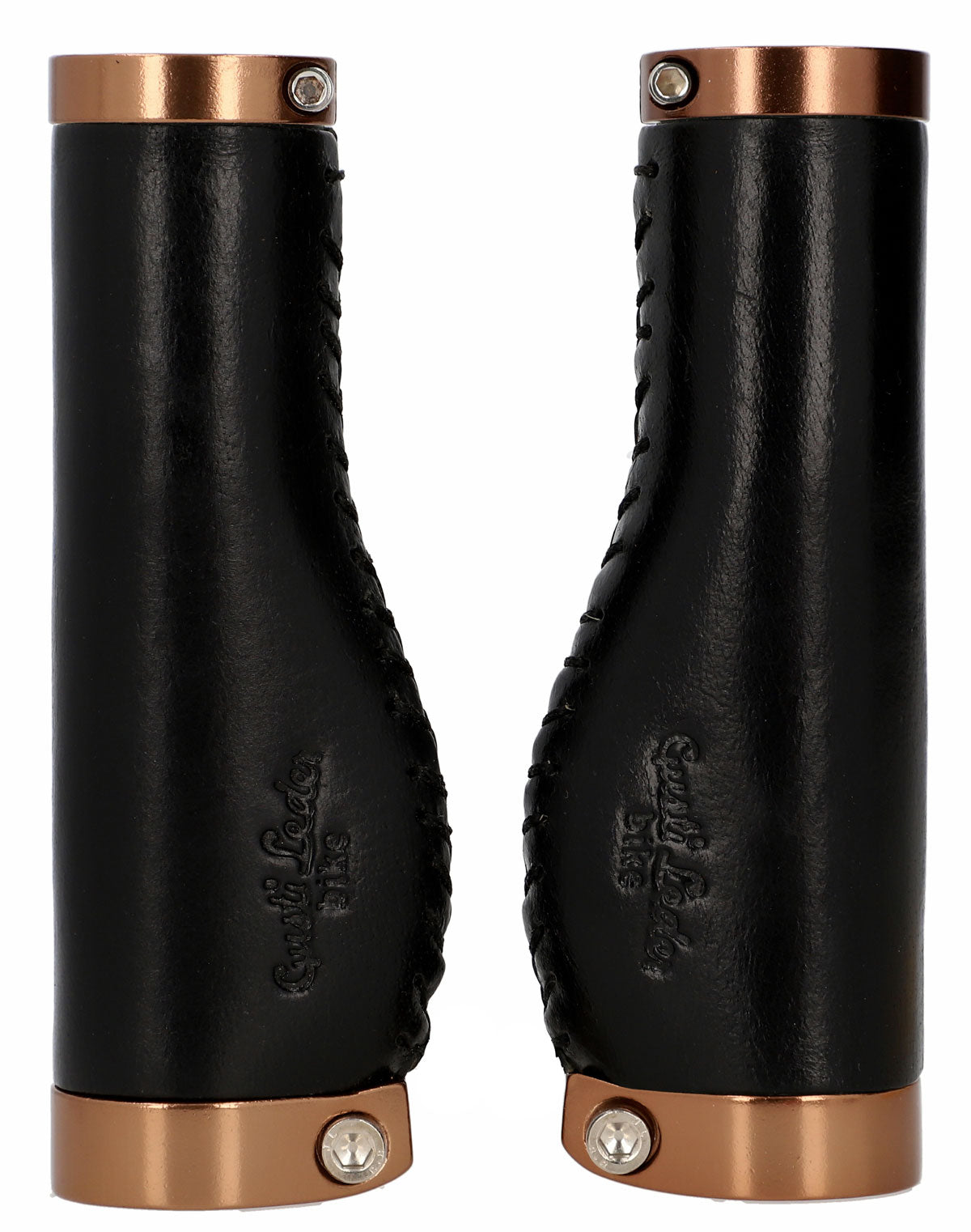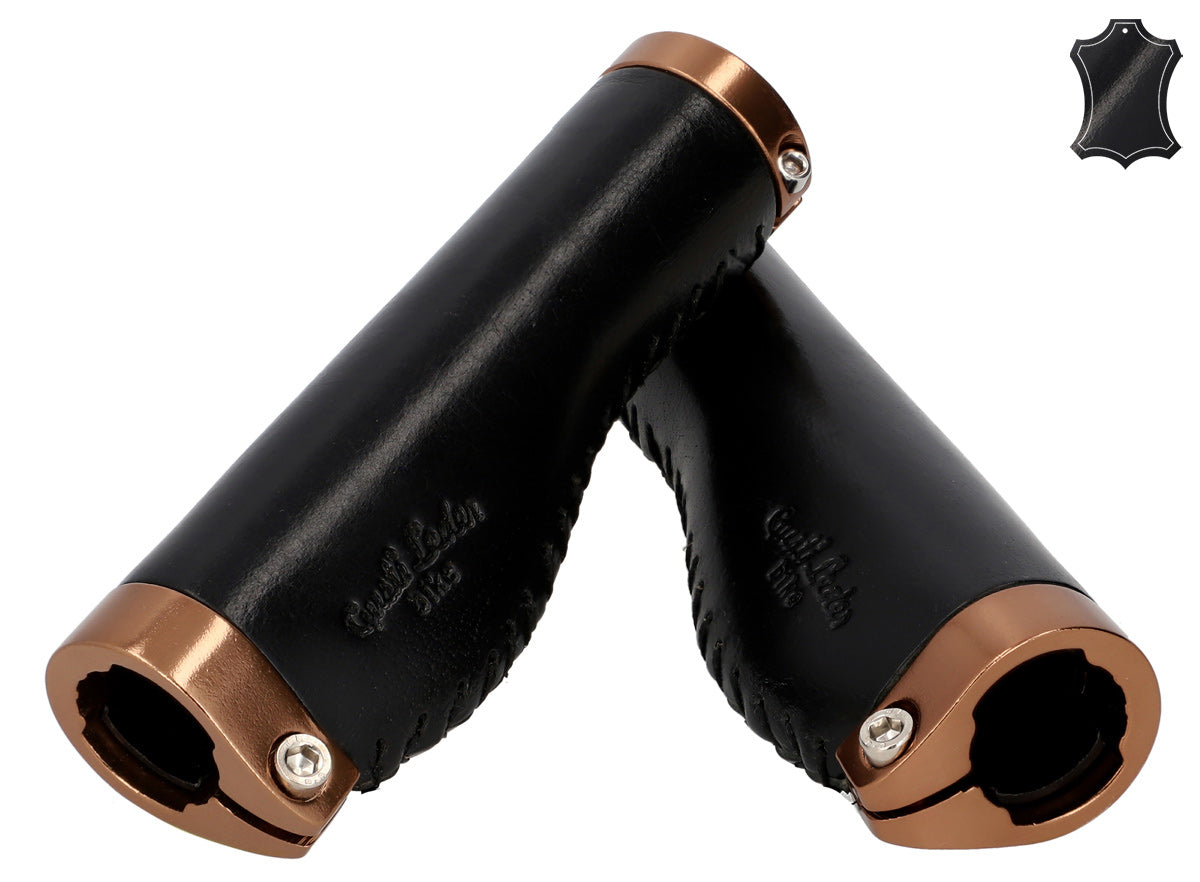 De leren handvatten "Phil A." passen optisch net zo goed bij een trendy single-speed fiets als bij een klassieke Hollandse fiets en zijn kinderlijk eenvoudig te monteren. Hun hoogwaardige materiaalcombinatie van gekleurd aluminium en 100% echt leer zorgt voor uitstekende grip en een constant goed stuurgedrag. Tegelijkertijd passen ze zich ideaal aan de anatomie van je handen aan, dempen schokken en trillingen en verhogen zo de gripveiligheid. Na een korte inrijperiode wil je het voelbare comfort en de aangename haptiek van deze handvatten niet meer missen.
