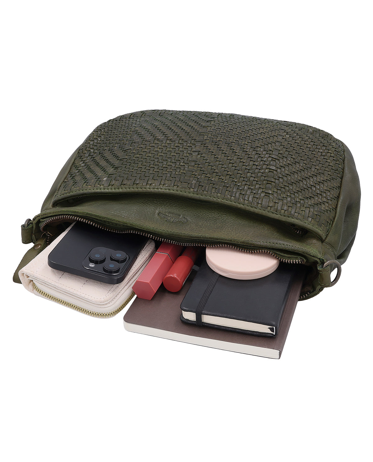 De grote handtas "Ulla" is een leren handtas voor dames die graag alles bij zich hebben in het dagelijks leven en daarbij niet willen inleveren op stijl. Het groene, gewassen leer geeft de tas een zachte, levendige uitstraling en maakt elke "Ulla" uniek. Als ruime leren tas biedt hij veel ruimte voor alles wat je gedurende de dag nodig hebt – gestructureerd, overzichtelijk en gemakkelijk toegankelijk. Een verborgen AirTag-vakje geeft je extra zekerheid, terwijl het strakke ontwerp ervoor zorgt dat de handtas ondanks zijn grootte rustig en modern oogt.