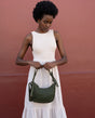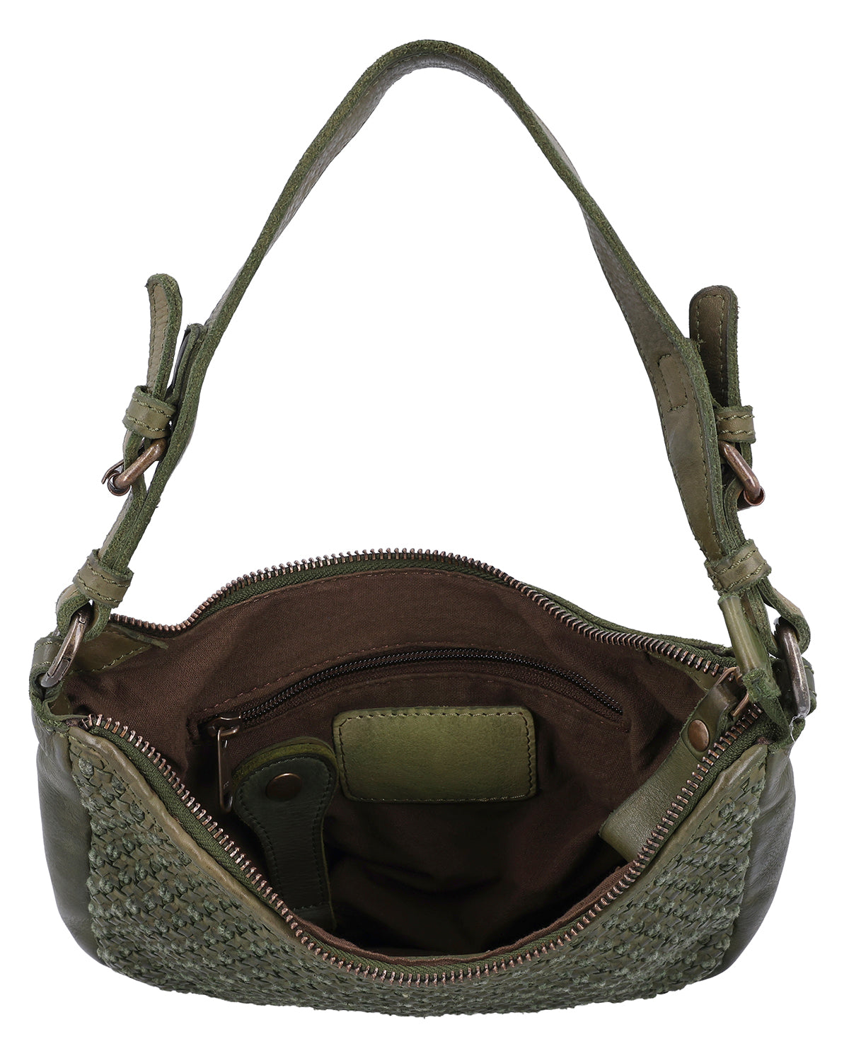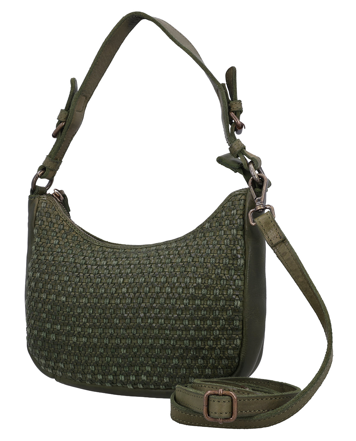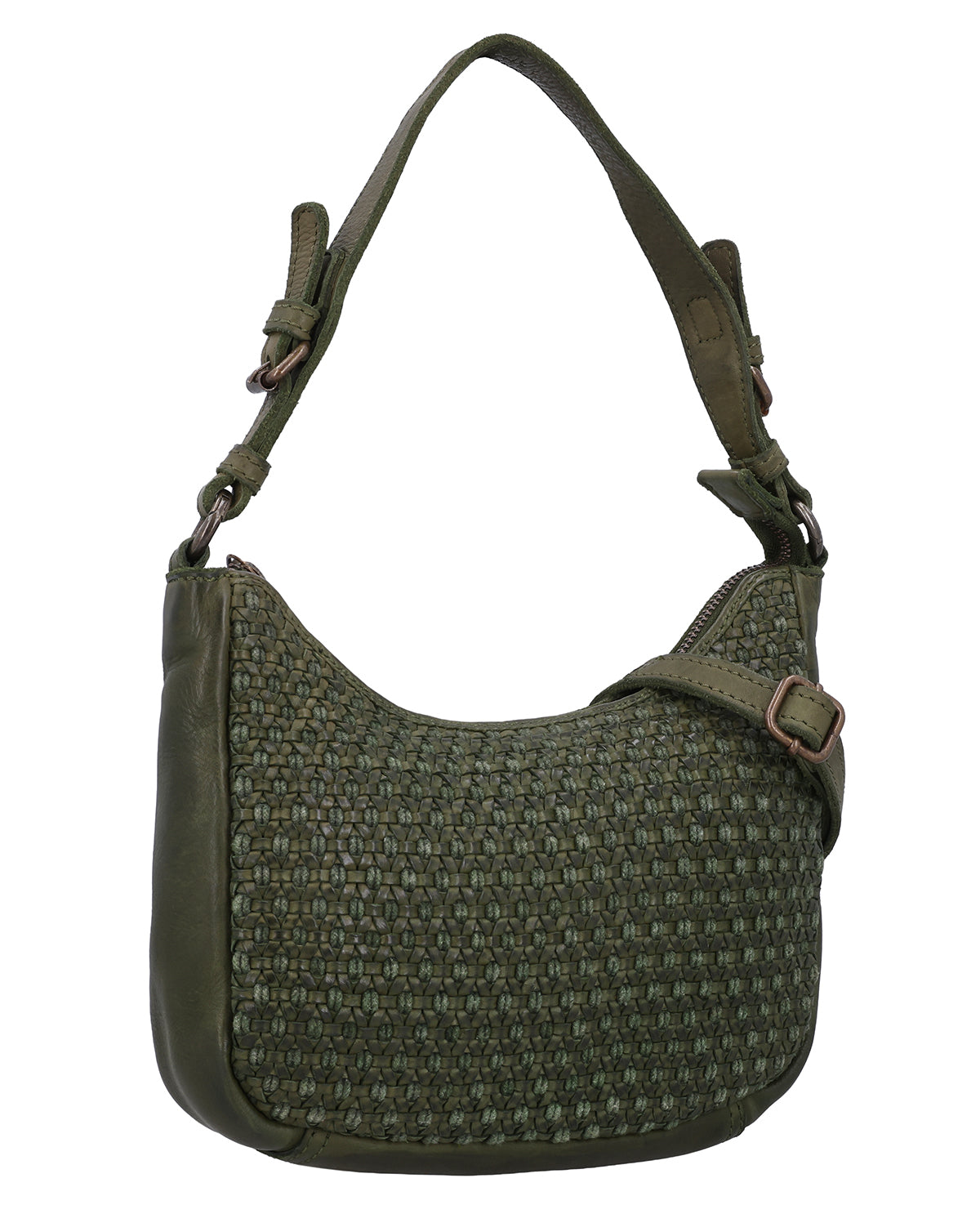 De kleine handtas "Darina" is een groene leren handtas voor dames die meteen opvalt door zijn gevlochten patroon. Het gestructureerde ontwerp geeft de tas een bijzondere diepte en maakt hem tot een stijlvolle metgezel voor dagelijks gebruik en vrije tijd. Een verborgen AirTag-vak zorgt voor extra veiligheid, terwijl een afneembare sleutelhanger je essentials binnen handbereik houdt. Eén hoofdvak met ritssluiting beschermt je spullen goed en dankzij twee verstelbare en afneembare draagriemen kun je "Darina" flexibel aanpassen aan je stijl.
