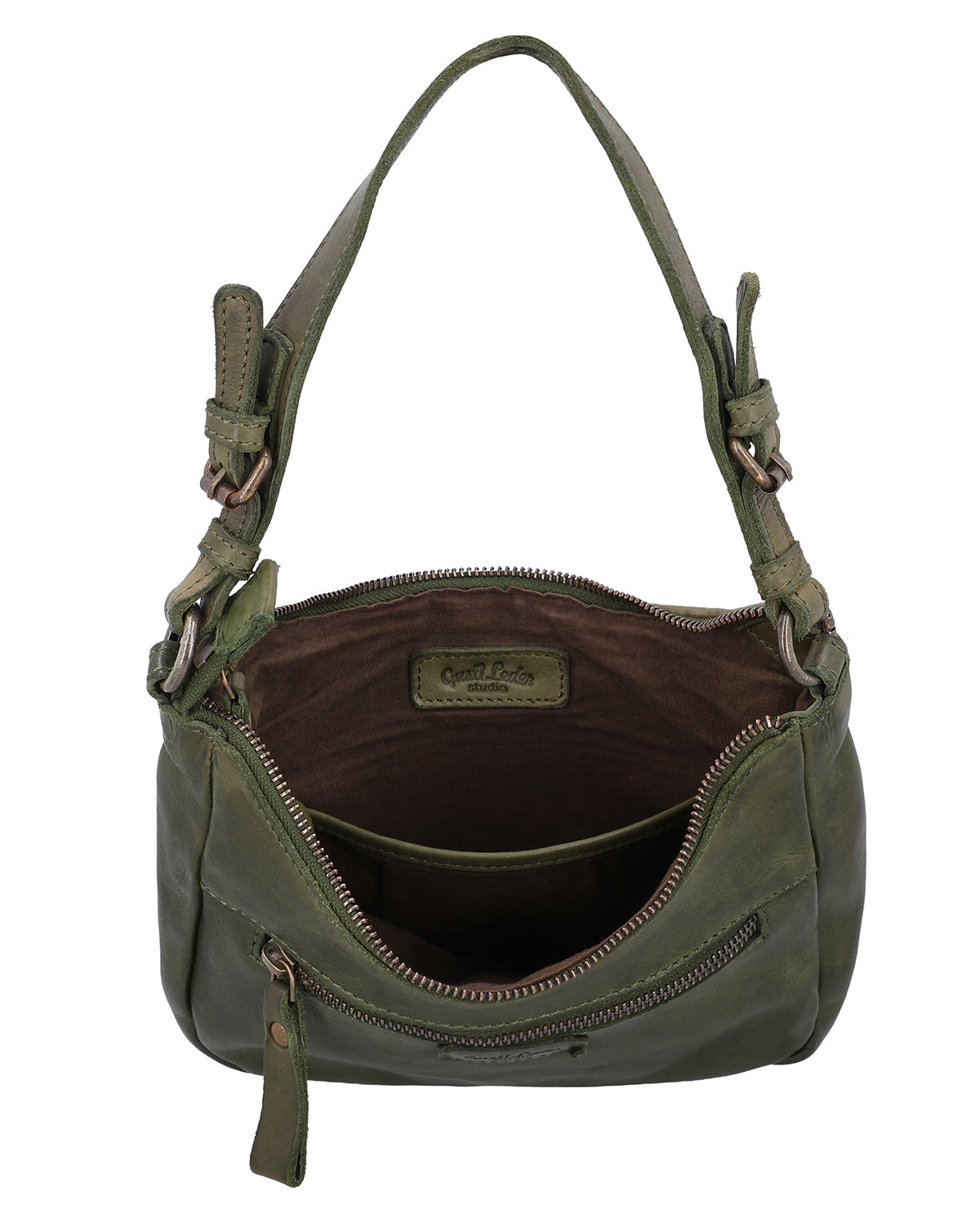 Binnenin zorgen steekvakken en een vak met ritssluiting voor een overzichtelijke indeling. Een extra buitenvak met ritssluiting biedt snelle toegang tot spullen die je onderweg vaak nodig hebt. Met een graveerpatch kun je de tas persoonlijk maken en van 'Darina' een individuele leren handtas maken. Deze kleine schoudertas combineert een bijzondere look met een functionele structuur en blijft daarbij aangenaam licht en veelzijdig te combineren.