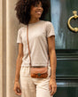 Moet je even de deur uit en heb je geen zin om een grote tas mee te nemen? Wat dacht je dan van "Rona"? Dit kleine leren tasje met haar trendy vintage look is niet zwaar, maar kan toch een mobiele telefoon, sleutels en portemonnee herbergen! Ze is ook perfect, wanneer je gewoon een korte wandeling wilt maken maar je jurk geen zakken heeft. "Rona" ziet er super schattig uit, vooral bij mooie bloemenjurken! Maar "Rona" slaat ook een goed figuur bij klassieke jeans en pullover-combinaties, met haar eenvoudige elegantie past ze stijlvol bij elke outfit, maar ziet er nooit uit als "too much".