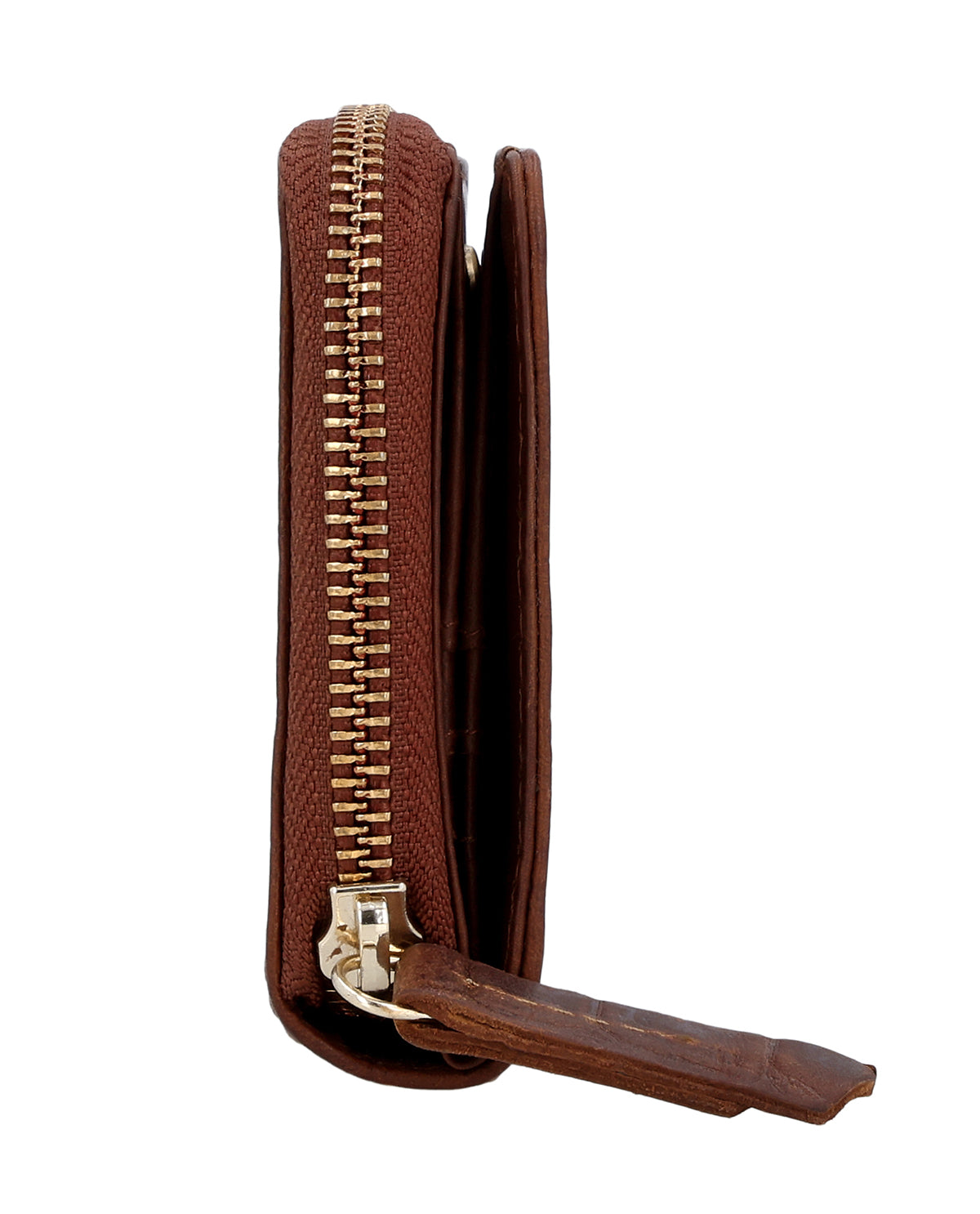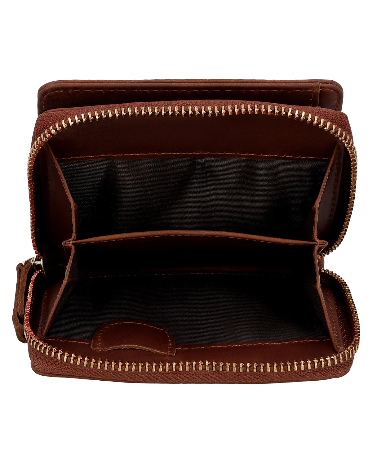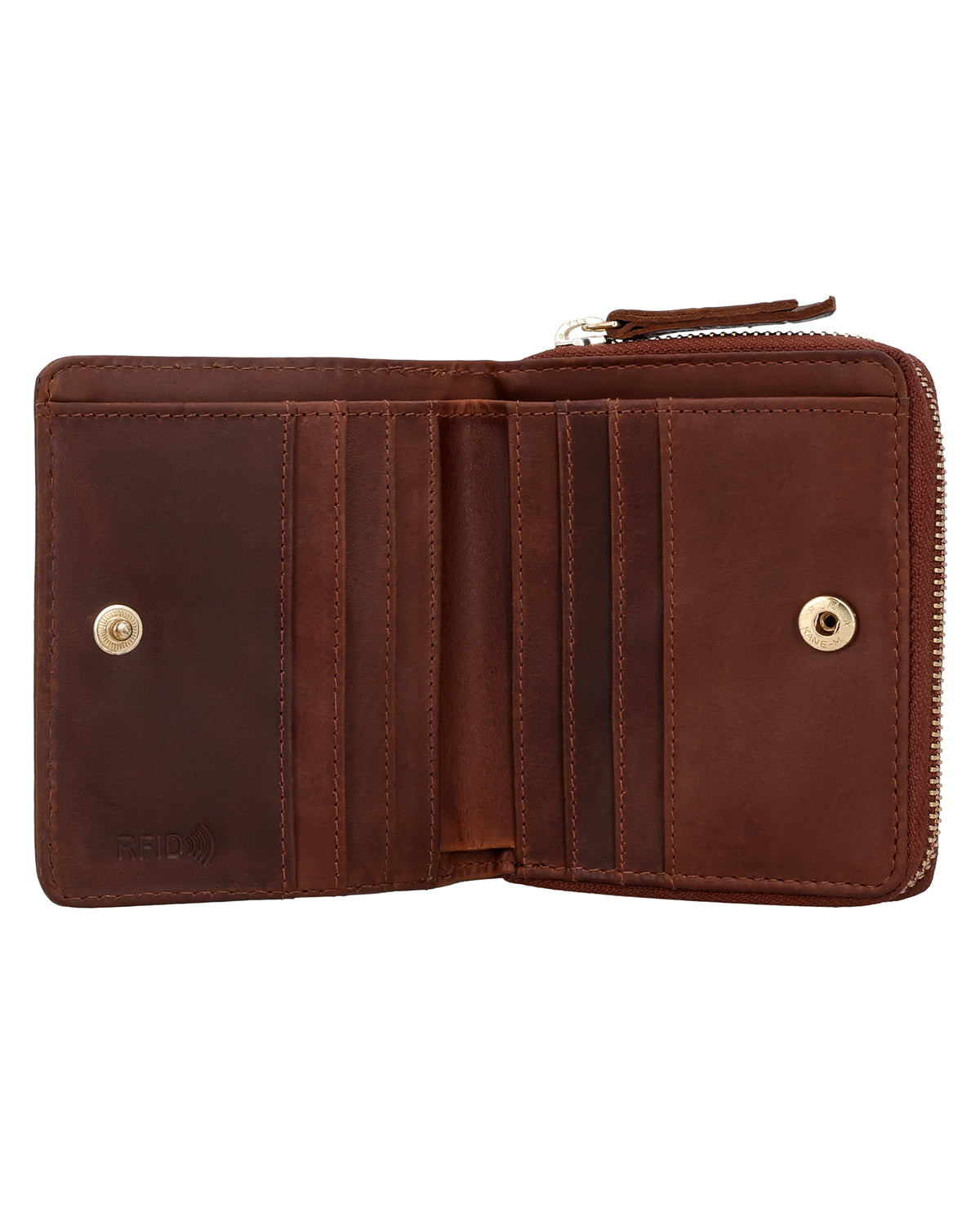 Aan de binnenkant heeft "Monika" een groot muntvak met twee compartimenten, zodat je zoveel mogelijk ruimte kunt benutten. Daarnaast is er een extra muntvak voor een enkele munt – perfect als je snel een passende munt bij de hand wilt hebben. Maar het hoogtepunt is zeker het opklapbare kaartvak met ruimte voor maximaal 8 kaarten en een insteekvak voor je bankbiljetten. De grote ritssluiting beschermt je spullen perfect, zodat er niets uit kan vallen. In je tas en gaan – met "Monika"!