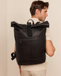 Of het nu voor school, universiteit of werk is – onze rolltop-rugzak "Mattis" past altijd. Want hij weet te overtuigen met zijn flexibiliteit, zijn hoge draagcomfort en ruimteaanbod. Deze klassiek-robuuste daypack van zwart buffelleer valt vooral op door zijn trendy rolltop – een look die je momenteel niet kunt negeren.