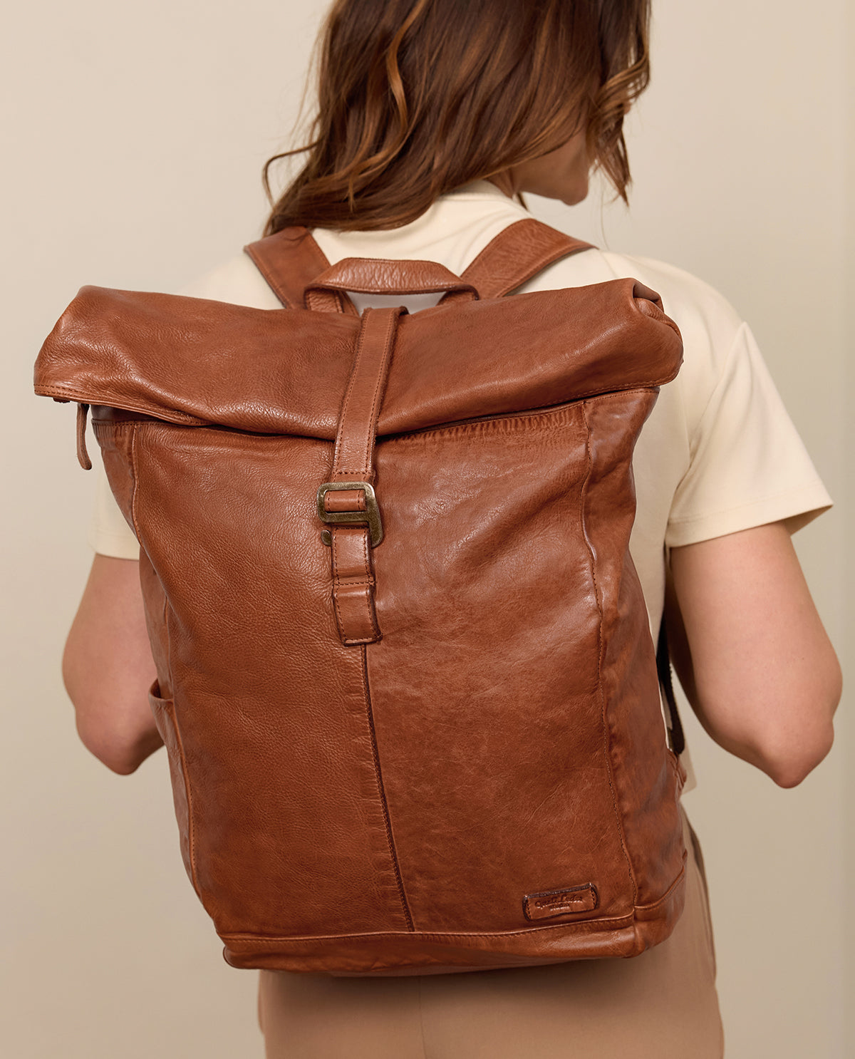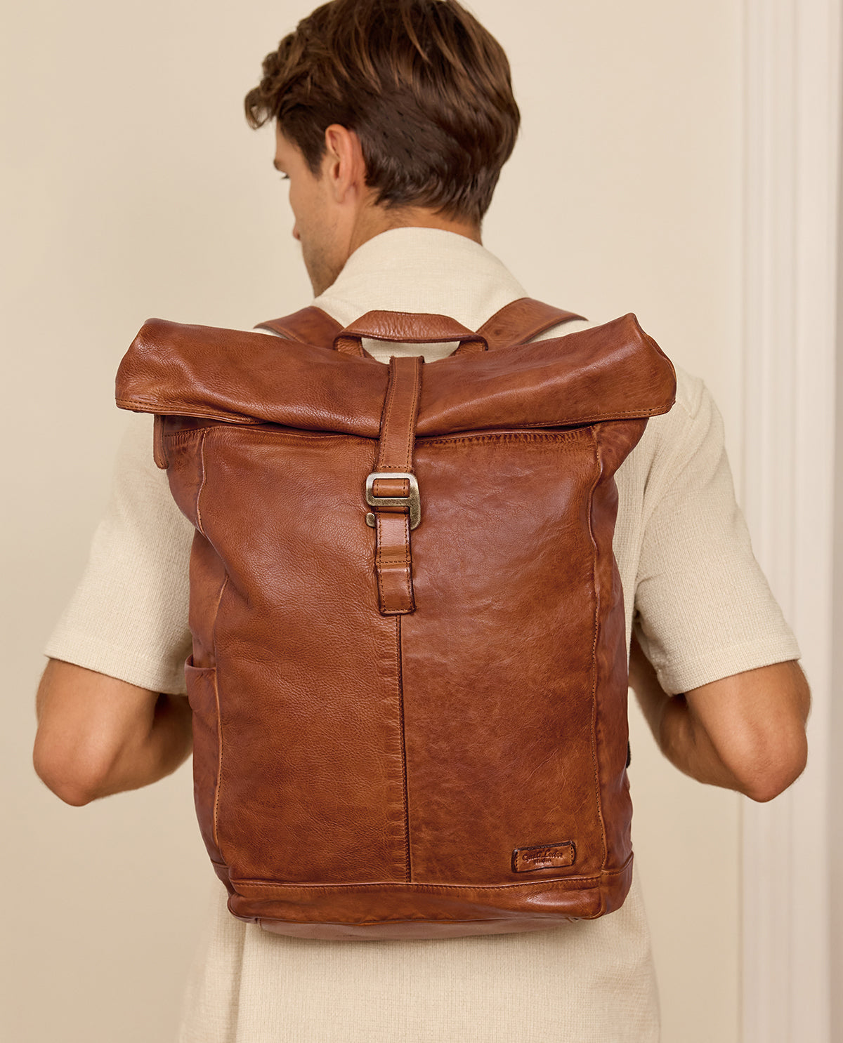 Voor school, universiteit of werk - onze rolltop rugzak "Bendik" kun je altijd gebruiken. Hij weet te overtuigen door zijn flexibiliteit, hoog draagcomfort en ruimte. Deze klassieke, stevige dagrugzak van leer valt vooral op door zijn trendy roll-top – een look, die je momenteel overal ziet.