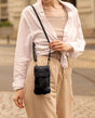 leren schoudertas handtas mobiele telefoon vintage zwart leer