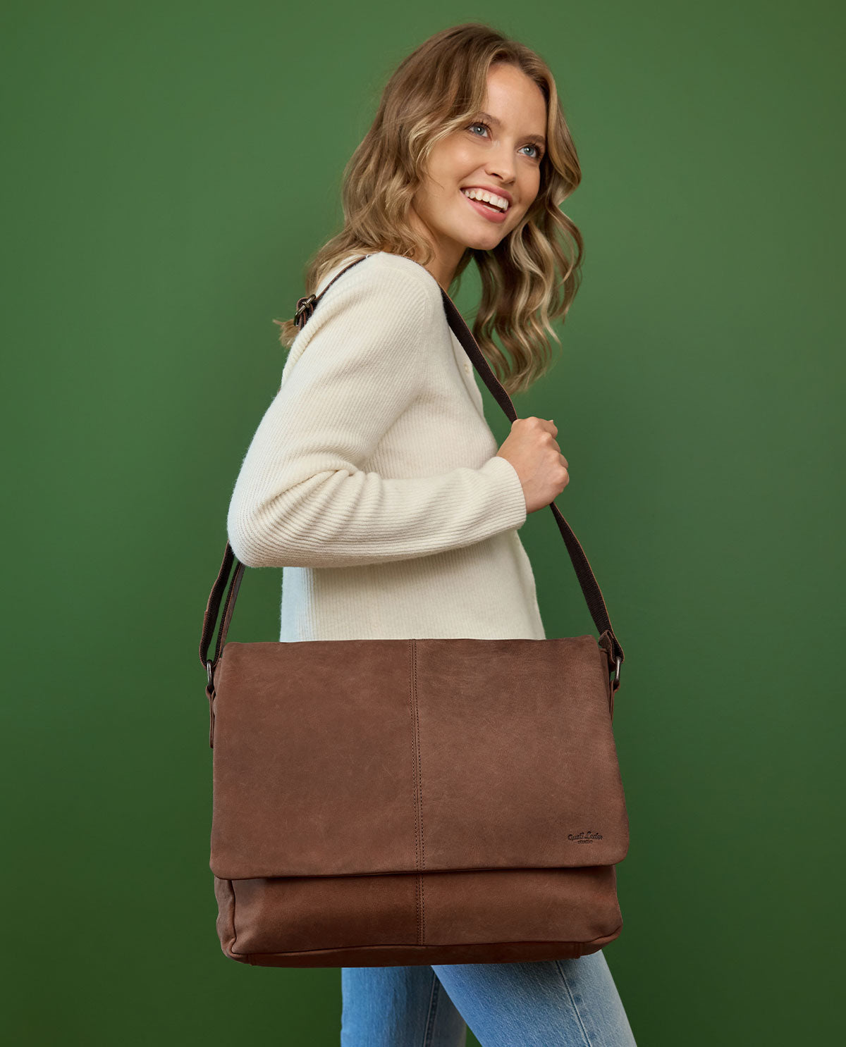 leren schoudertas voor mannen vintage bruin leer