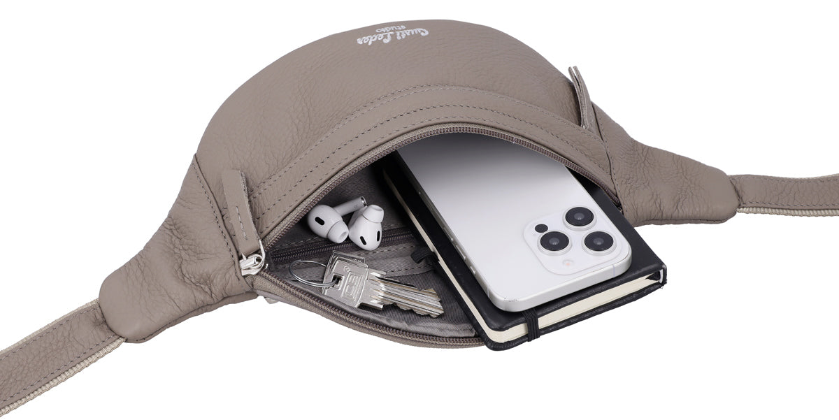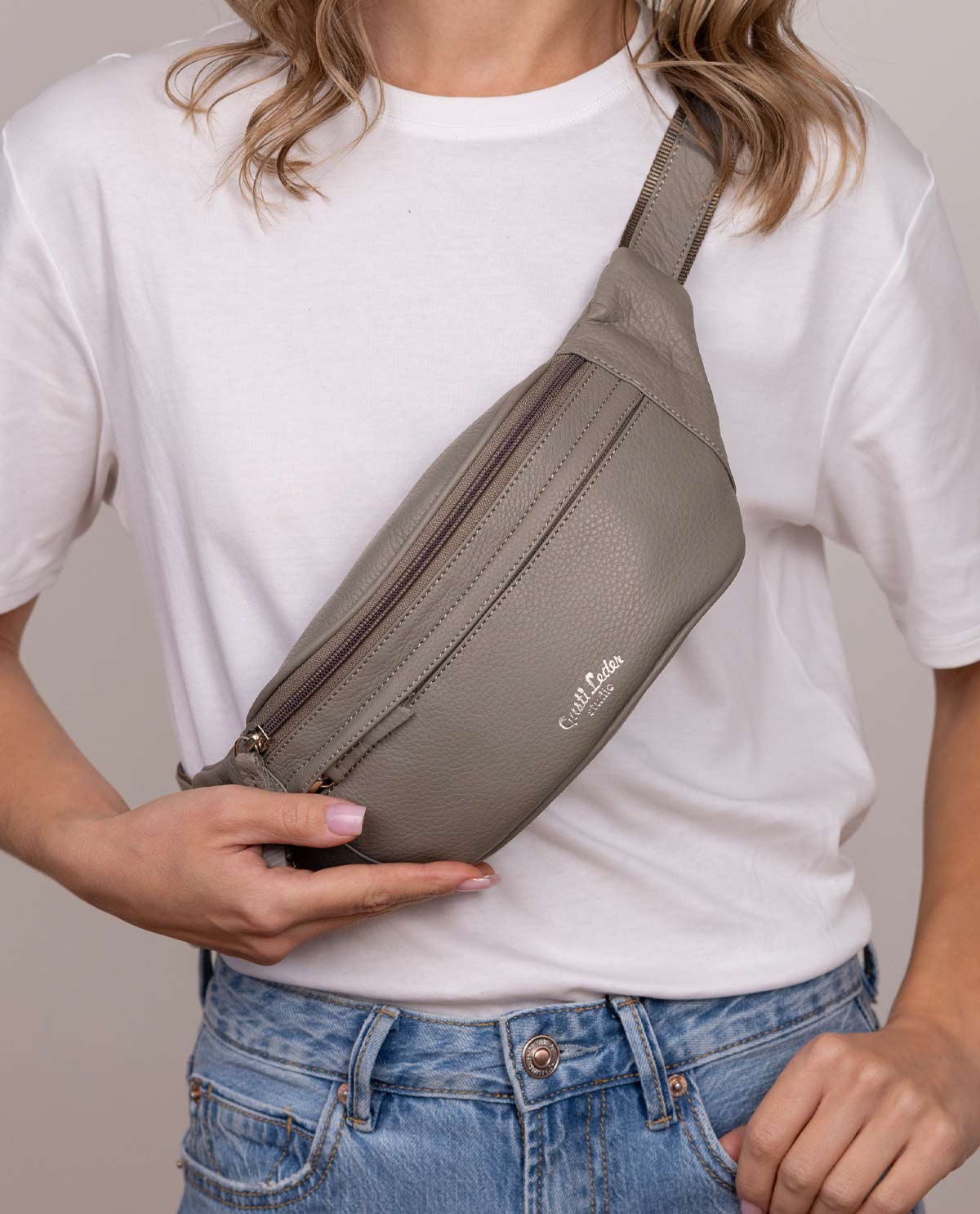 Limited Edition - Leren riemtas heuptas buiktas festivaltas grijs leer