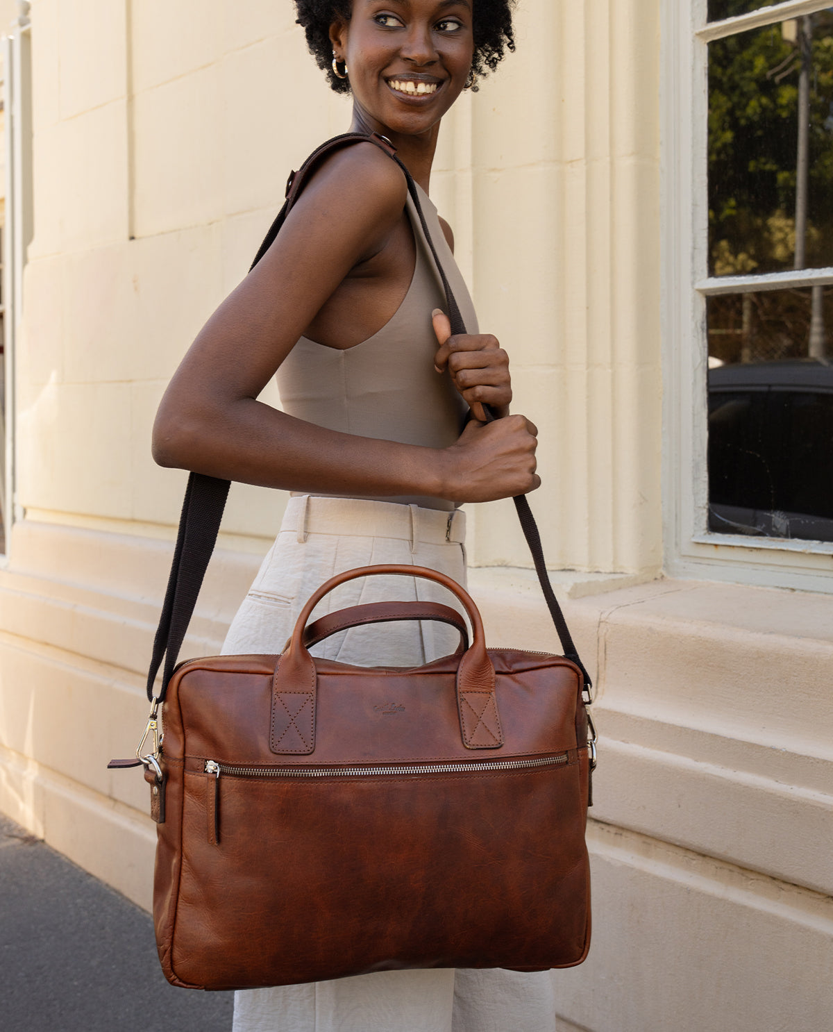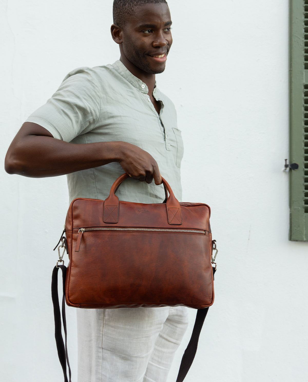 Je perfecte metgezel: de aktetas "Elijah" in vintage bruin van plantaardig gelooid leer!
