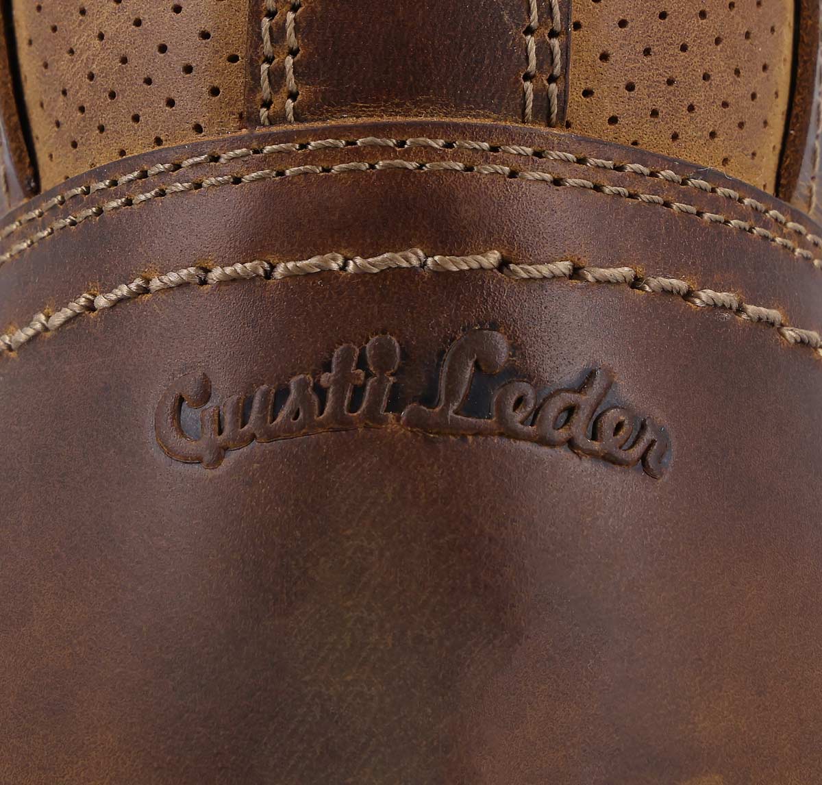Van binnen overtuigt "Oberon" met een geruite textielvoering en een combinatie van leren en stoffen inzetstukken, die ademend vermogen en draagcomfort garanderen. De binnenzool van rundleer biedt een aangenaam loopgevoel, terwijl de zool van polyurethaan flexibiliteit en stabiliteit combineert – ideaal voor lange dagen op de been. Een geprente Gusti Leder logo op de hiel benadrukt de hoogwaardige afwerking en de tijdloze stijl. Met "Oberon" geniet je van een schoen die elegantie, comfort en ambachtelijke kwaliteit in perfecte harmonie verenigt – voor de moderne man met gevoel voor stijl.