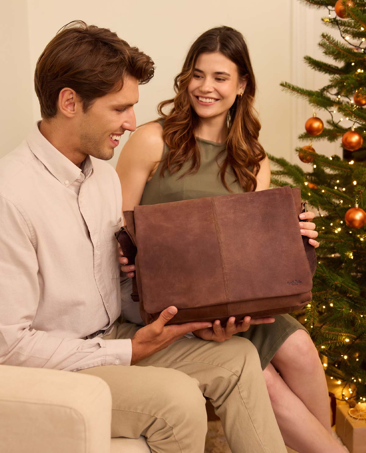 Onze schoudertas is gemaakt van hoogwaardig, stevig leer. Het duurzame materiaal krijgt met de tijd karakter en ontwikkelt een unieke patina. Elke tas is handgemaakt en heeft zijn eigen individuele kenmerken, waardoor het een uniek exemplaar wordt. De bruine kleur geeft de tas een authentieke vintage-look, die perfect bij elke outfit past. Bovendien biedt de tas voldoende opbergruimte: Het hoofdvak is groot genoeg voor een tablet, een notebook of belangrijke documenten. Twee binnenvakken en een ritsvak zorgen voor orde, terwijl de verstelbare schouderriem voor optimaal draagcomfort zorgt - of het nu nonchalant over de schouder of dwars over het lichaam wordt gedragen.